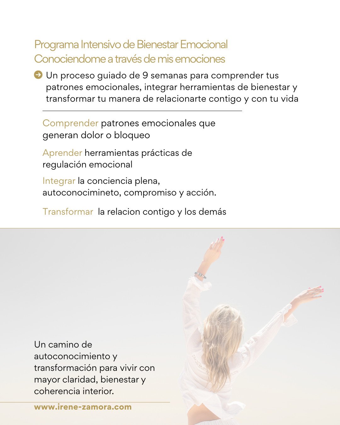 Te acompaño a través de sesiones individuales o mediante un programa intensivo de bienestar de 9 semanas, pensado para quienes desean un proceso de acompañamiento con estructura, objetivos claros y resultados tangibles. En este programa trabajamos en: - Comprender los patrones emocionales que generan malestar - Aprender herramientas prácticas de regulación emocional - Integrar técnicas de mindfulness y autoconocimiento - Generar cambios concretos en la forma de relacionarte contigo y con tu vida Muchas personas describen este proceso como un antes y un después en su bienestar emocional.