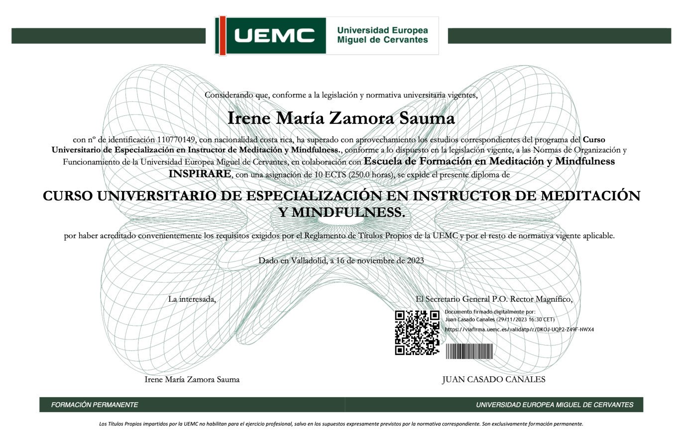 Diplomado Universidad Miguel de Cervantes, Valladolid, España