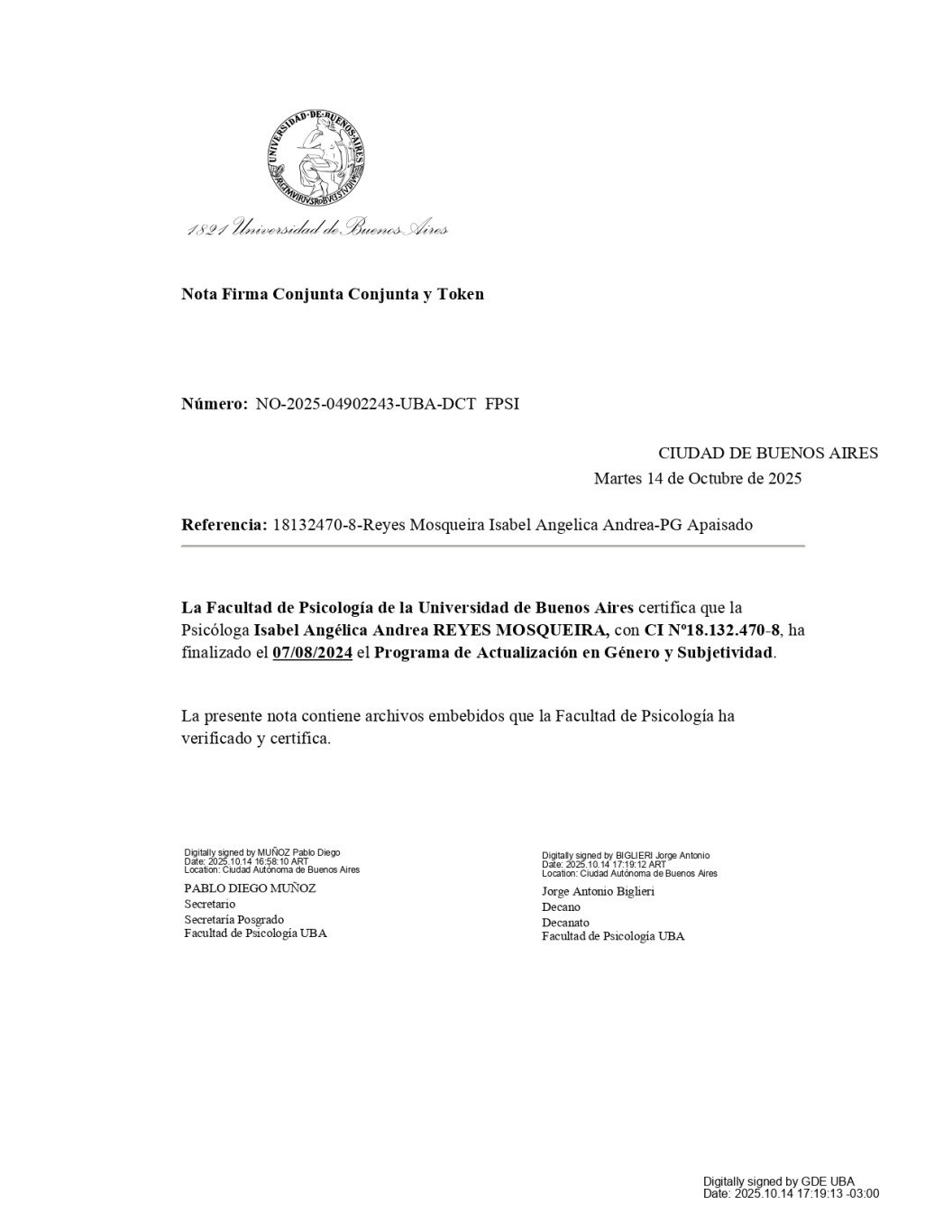 Diplomado Universidad de Buenos Aires, Argentina