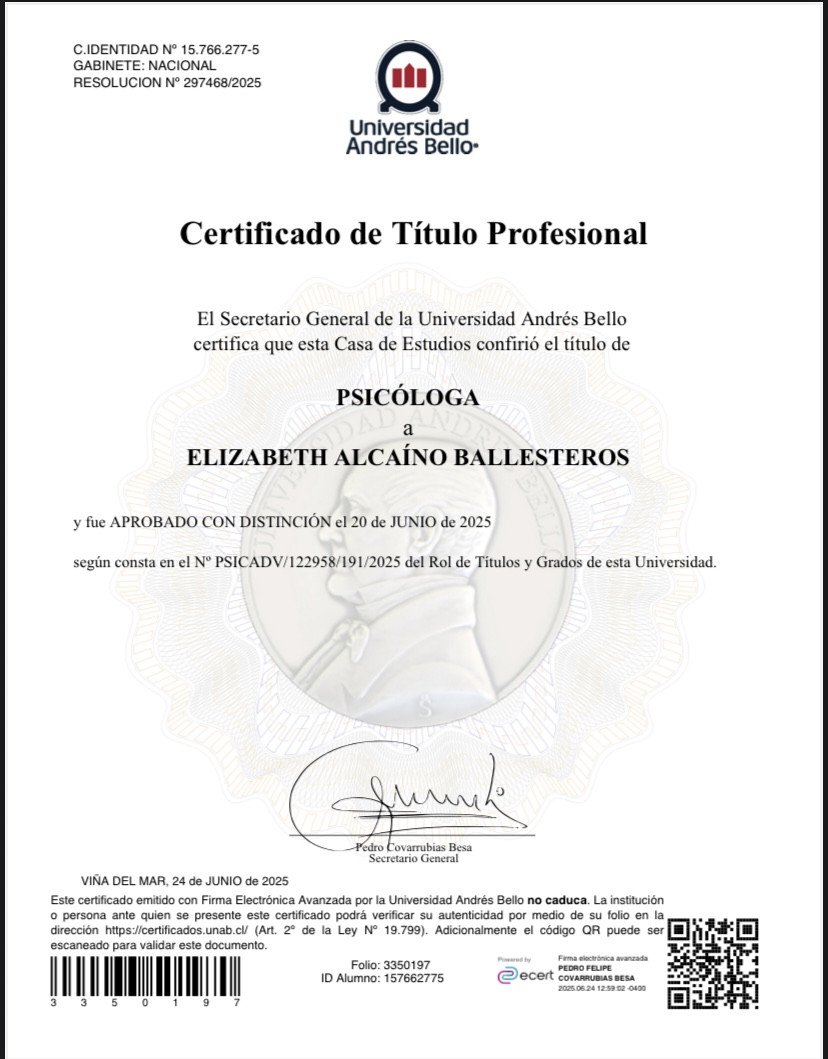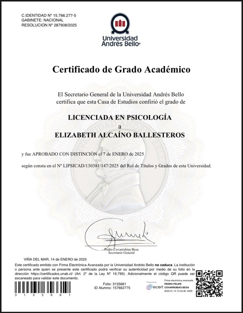 - Psicologa - Graduado Universidad Andres Bello, Chile