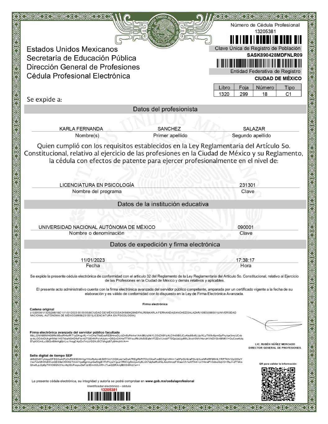 Hola, soy Karla, psicóloga clínica. Brindo acompañamiento psicológico a adolescentes y adultos que buscan mejorar su bienestar emocional, fortalecer su autoestima y construir relaciones más saludables. Trabajo con problemáticas como ansiedad, depresión, estrés, traumas, duelo, fobias, dificultades relacionales, problemas emocionales, psicosis y otros desafíos de la vida cotidiana. Mi trabajo se basa en un enfoque empático, profesional y sustentado en evidencia científica. Mi objetivo es ayudarte a desarrollar habilidades, comprenderte mejor y generar cambios significativos en tu vida.