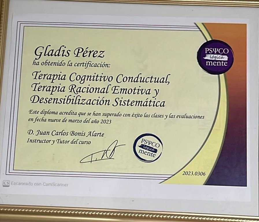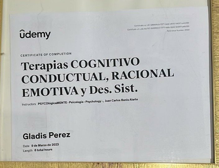 Soy Psic. Gladis Pérez, psicóloga clínica. Trabajo con adolescentes y adultos desde la Terapia Cognitivo-Conductual (TCC), un enfoque basado en evidencia científica. Acompaño procesos de cambio emocional mediante un trabajo estructurado, con objetivos claros y respetando el ritmo de cada persona. El espacio terapéutico se construye desde la empatía, la escucha y el compromiso profesional, con el objetivo de que el paciente comprenda lo que le sucede y desarrolle herramientas prácticas para su vida cotidiana. Áreas de intervención: Ansiedad Depresión Autoestima Regulación emocional Duelos Conflictos relacionales Modalidad de trabajo: Atención presencial y en línea Sesiones individuales Enfoque práctico y colaborativo Si consideras que este enfoque puede ayudarte, estaré encantada de acompañarte en este proceso terapéutico.