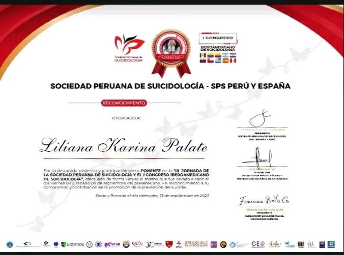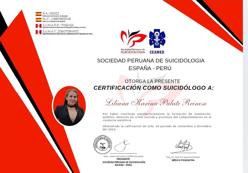 Postgrado Sociedad Peruana de Suicidología España- N.I.F G880983348 Perú S.U.N.A.R.P 11156456, España