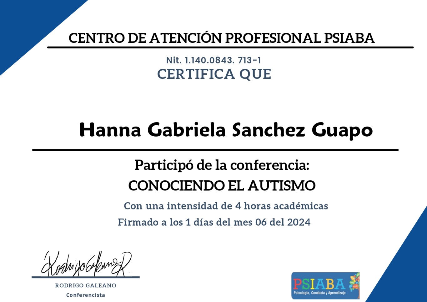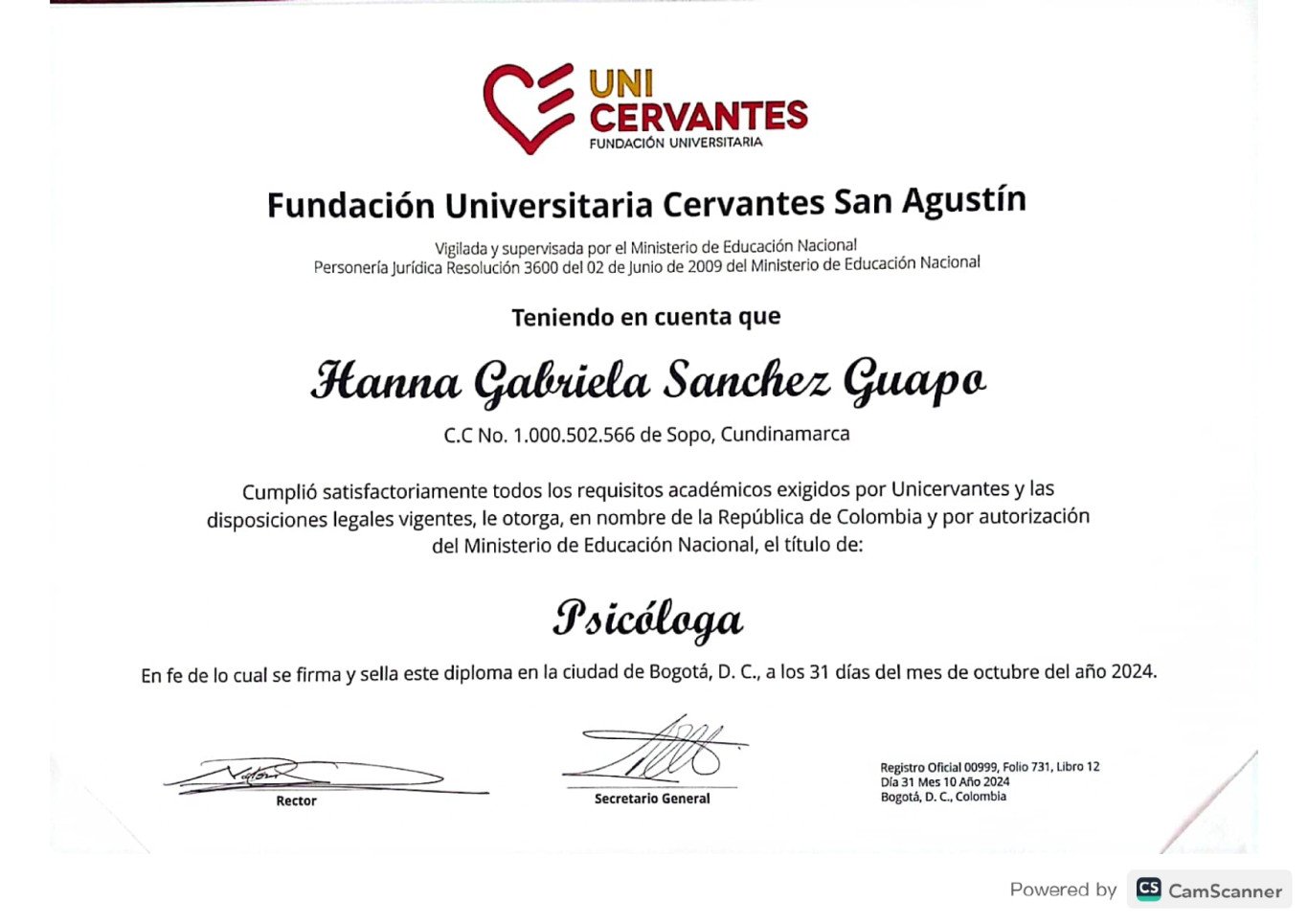 Reconocimientos a Hanna Gabriela Sánchez Guapo