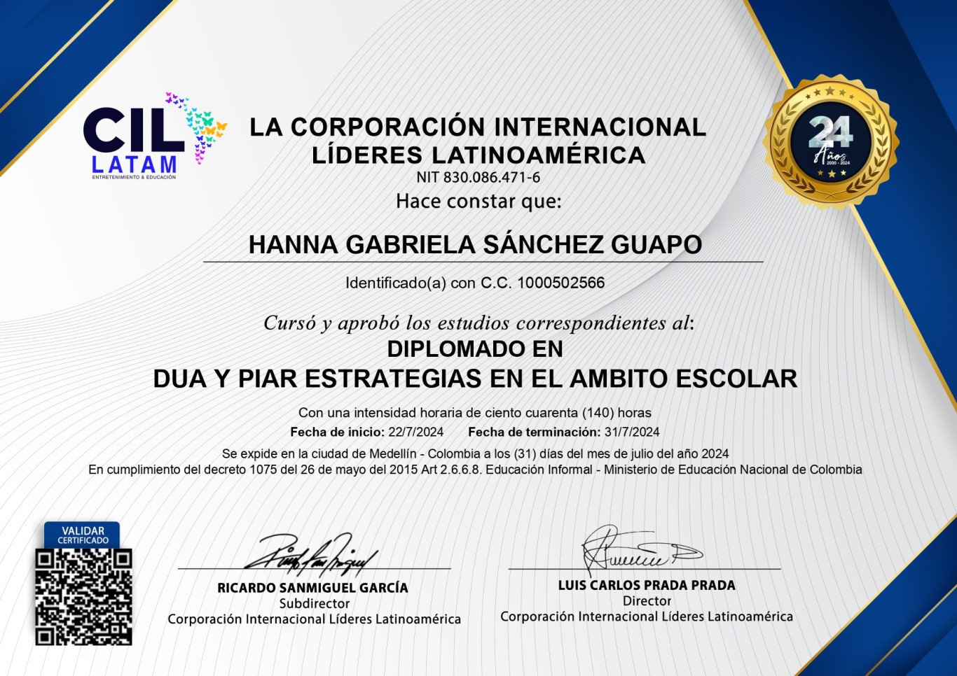 Diplomado Coorporación internacional lideres Latinoamérica, 2024, Colombia