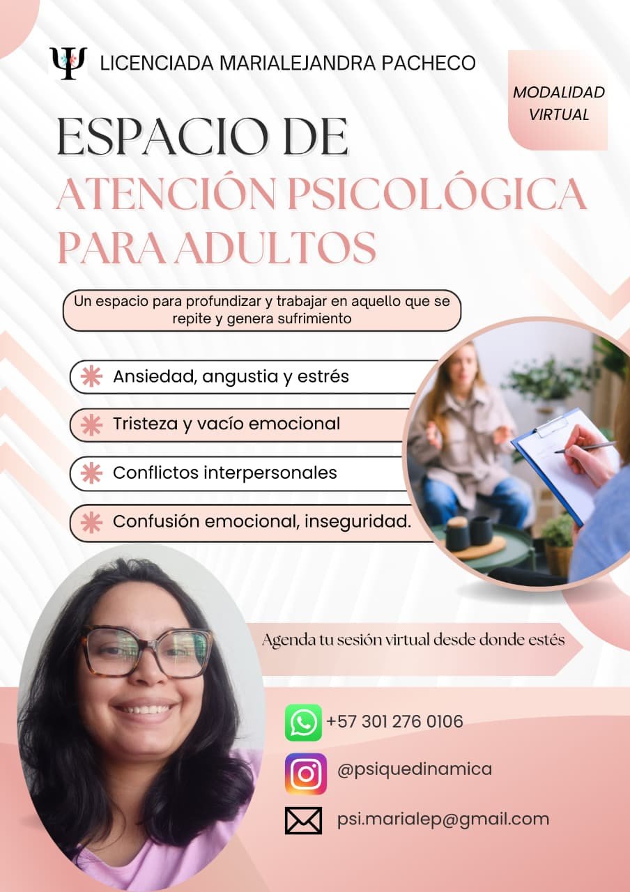 Soy psicóloga con experiencia en psicoterapia, especializada en el tratamiento de problemas de ansiedad, depresión, duelos, conflictos interpersonales, proyecto de vida. Mi enfoque terapéutico se centra en ofrecer un espacio que te permitirá explorar profundamente tus emociones, pensamientos y patrones de comportamiento para comprender la base de tus conflictos. El objetivo será generar cambios a nivel psíquico que se traduzcan en mayor autoconocimiento, mejores relaciones interpersonales, mayor capacidad de disfrute y bienestar general.