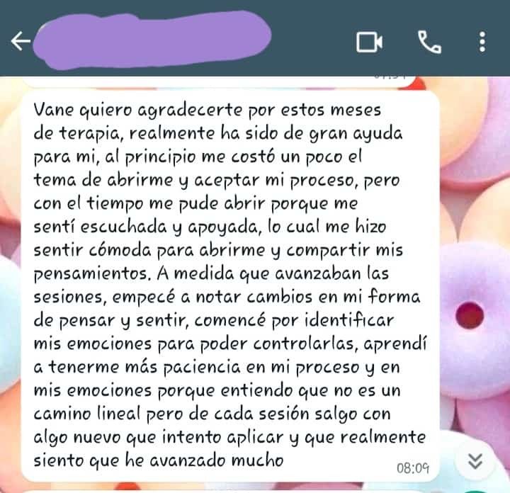 ¡Hola! Soy Vanessa, psicóloga con énfasis en el área clínica, dedicada a acompañar a personas que buscan un espacio de comprensión y sin juicios. Entiendo que dar el primer paso hacia la terapia requiere valentía, por eso mi prioridad es que desde nuestra primera sesión te sientas en un lugar seguro. En mi consulta, busco que tu historia sea escuchada, validada y resignificada, honrando todo lo que has caminado para llegar hasta acá. Mi trabajo se centra en la Terapia de Esquemas, la cual nos permite identificar esos patrones que te llevan a repetir ciclos que te duelen. Complemento este proceso con herramientas de la Terapia de Aceptación y Compromiso (ACT) para generar cambios desde un lugar de mayor humanidad, comprensión y responsabilidad, ayudándote a recuperar tu autonomía y el bienestar que te mereces.
